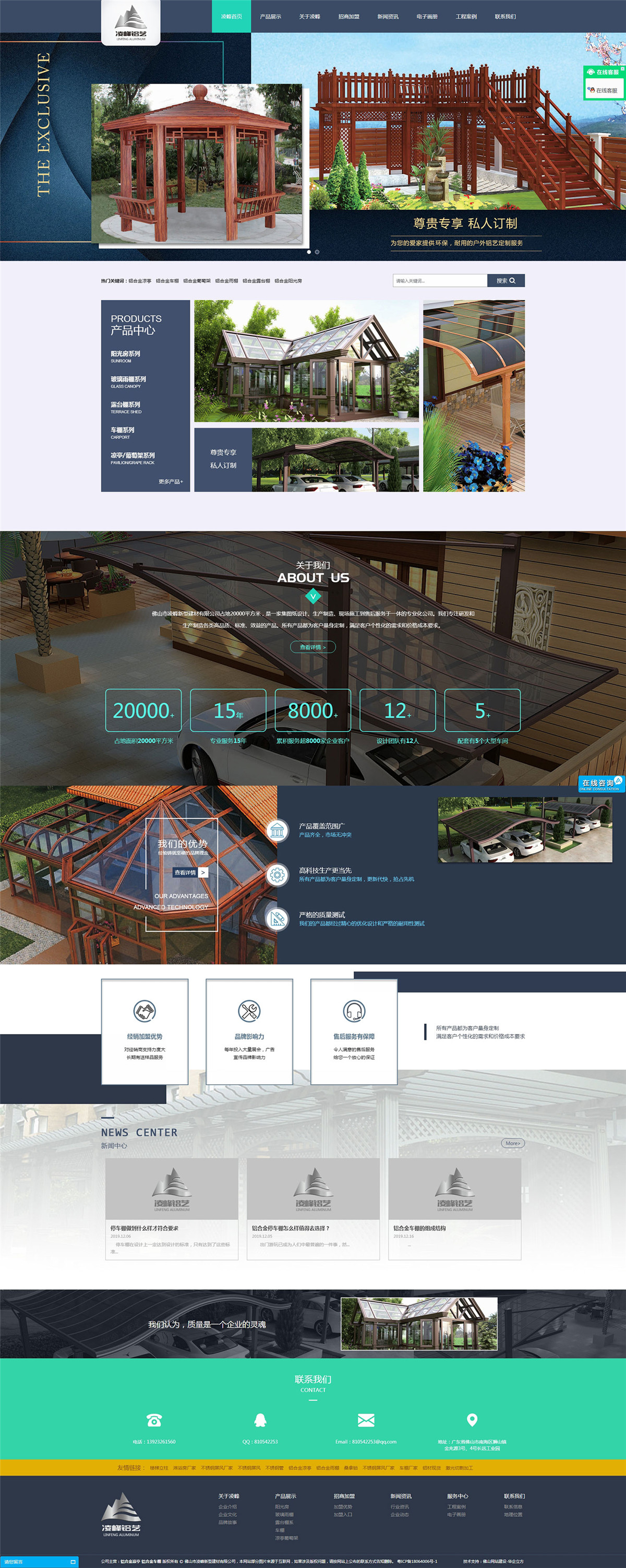 佛山市凌峰新型建材有限公司占地20000平方米,是一家集圖紙?jiān)O(shè)計(jì)、生產(chǎn)制造、現(xiàn)場施工到售后服務(wù)于一體的專業(yè)化公司。我們專注研發(fā)和生產(chǎn)制造各類高品質(zhì)、標(biāo)準(zhǔn)、效益的產(chǎn)品,包括鋁合金汽車棚、自行車棚、露臺(tái)棚、窗棚、玻璃雨棚、葡萄架、涼亭、陽光房、鋁藝門、護(hù)欄等戶外設(shè)施。