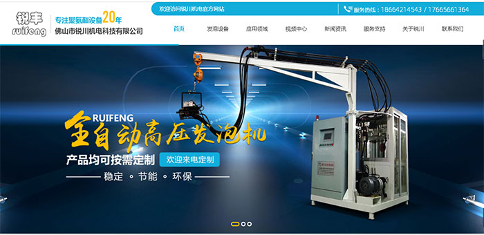 高壓發(fā)泡機行業(yè)網站建設案例展示之佛山市銳川機電科技有限公司