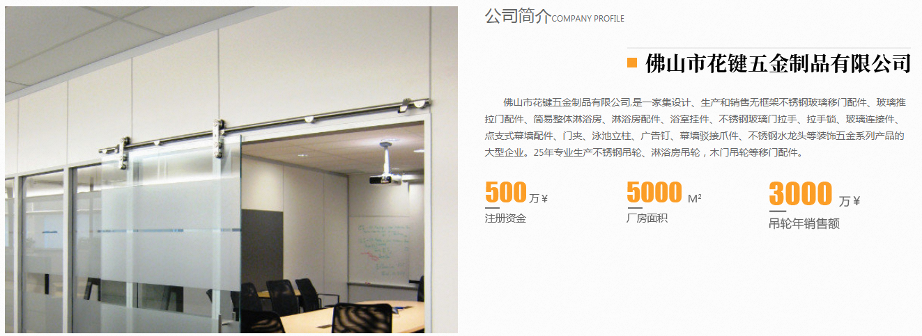 今天來分享一個(gè)玻璃推拉門配件網(wǎng)站建設(shè)案例——佛山市花鍵五金制品有限公司