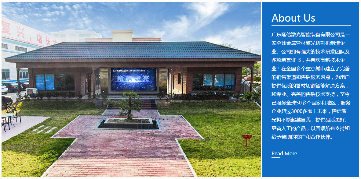 廣東隆信激光智能裝備有限公司是一家金屬管材激光切割機(jī)制造企業(yè)。公司擁有強(qiáng)大的技術(shù)研發(fā)團(tuán)隊(duì)及多項(xiàng)榮譽(yù)證書(shū),并榮獲高新技術(shù)企業(yè)!在多個(gè)重點(diǎn)城市建立了完善的銷(xiāo)售渠道和售后服務(wù)網(wǎng)點(diǎn),為用戶(hù)提供的管材切割智能解決方案,和專(zhuān)業(yè)、完善的售后技術(shù)支持,至今已服務(wù)50多個(gè)國(guó)家和地區(qū),服務(wù)企業(yè)超過(guò)3000多家!未來(lái),隆信激光將不斷自我,提供品質(zhì)更省人工的產(chǎn)品,以回饋所有支持和給予幫助的客戶(hù)和合作伙伴。