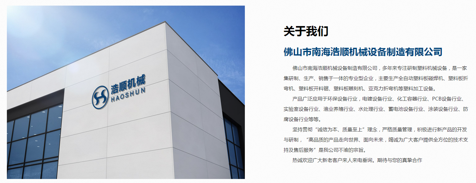 佛山市南海浩順機(jī)械設(shè)備制造有限公司,多年來(lái)專注研制塑料機(jī)械設(shè)備,是一家集研制、生產(chǎn)、銷售于一體的專業(yè)型企業(yè),主要生產(chǎn)全自動(dòng)塑料板碰焊機(jī)、塑料板折彎?rùn)C(jī)、塑料板開(kāi)料鋸、塑料板雕刻機(jī)、亞克力折彎?rùn)C(jī)等塑料加工設(shè)備。