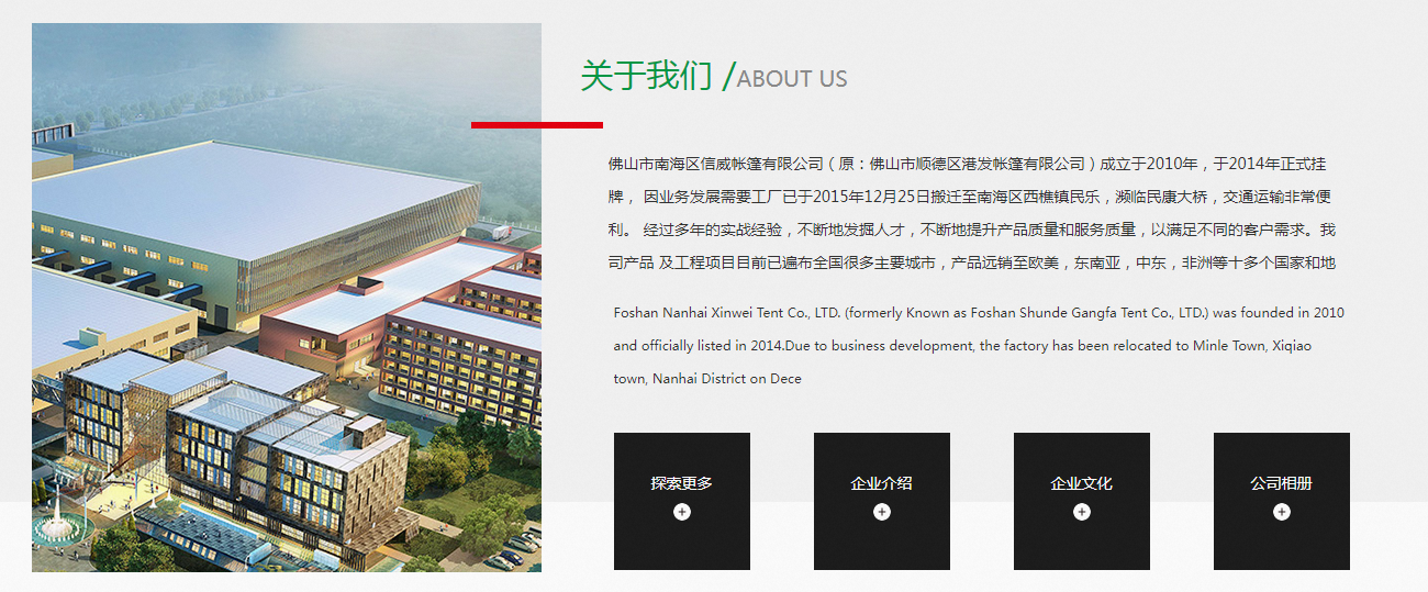 今天來分享一個大型帳篷網(wǎng)站建設(shè)案例——佛山市南海區(qū)信威帳篷有限公司
