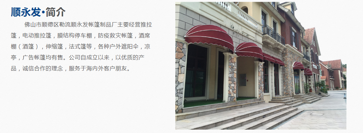 今天來(lái)分享一個(gè)伸縮篷網(wǎng)站制作案例——佛山市順德區(qū)勒流順永發(fā)帳篷制品廠